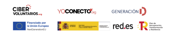 Una iniciativa impulsada por Fundación Cibervoluntarios, dentro de las iniciativas Generación D impulsada por Red.es, Ministerio para la Transformación Digital y de la Función Pública, y están financiadas por el Plan de Recuperación, Transformación y Resiliencia a través de los fondos Next Generation de la Unión Europea.